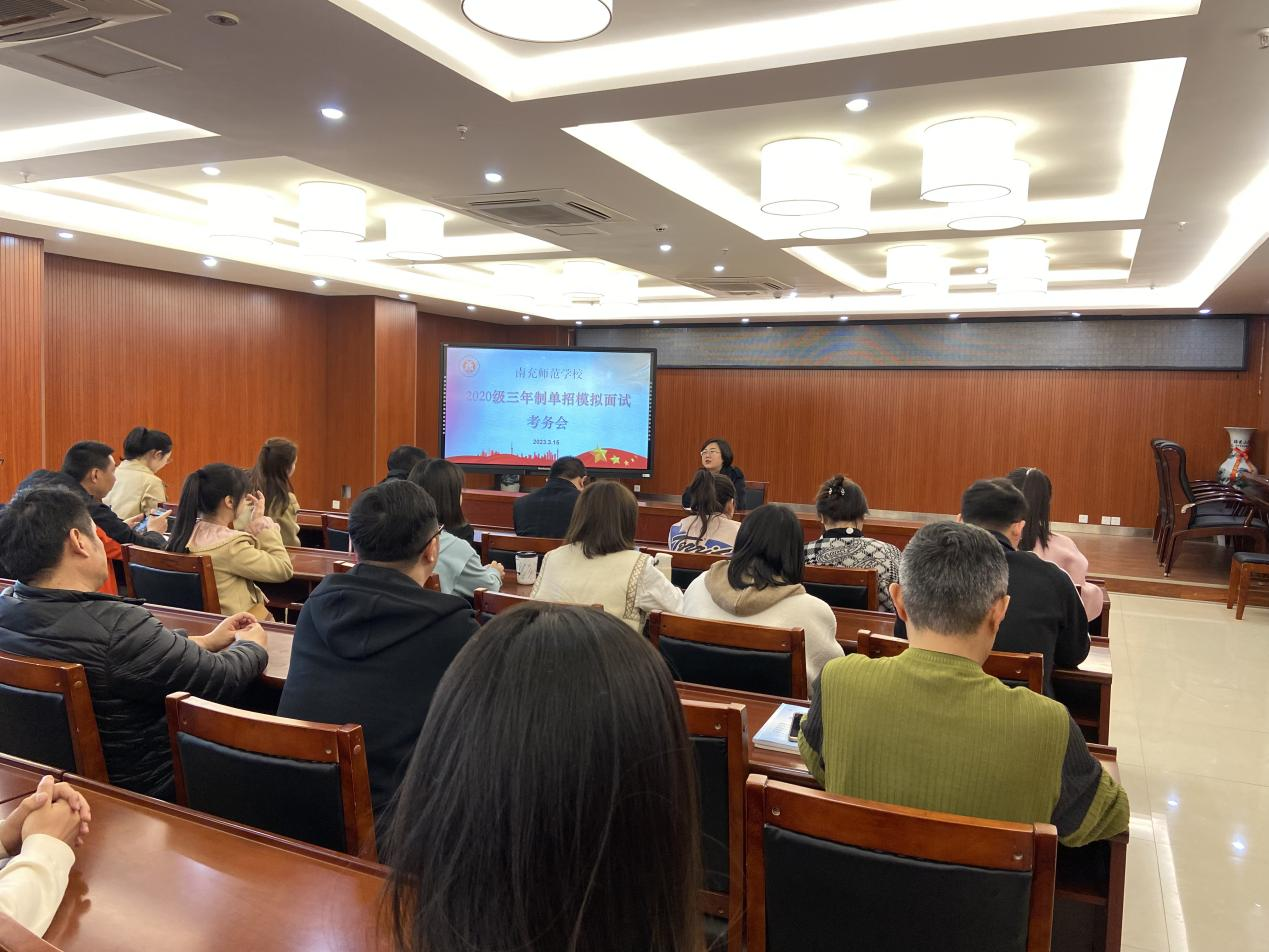 教务处根据学生填报志愿情况认真设置面试题目,创设面试环境,设计面试流程和环节,力求最大程度还原面试现场情景。安排专业教师研究方案、指导学生准备面试并提前召开考务工作会安排模拟面试考试工作。